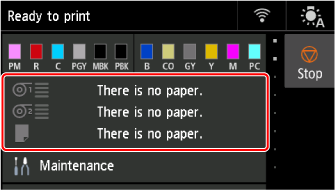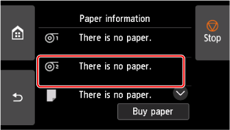 Selecione a área de exibição das configurações de papel na tela inicial.