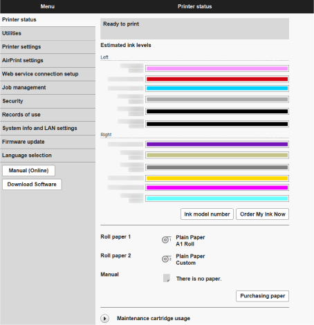 Você também pode se conectar ao site de compra de tinta ou à página de suporte e usar os Serviços da Web.