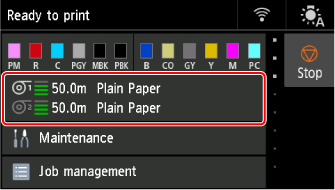 Selecione a área de exibição das configurações de papel na tela INÍCIO.