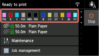 Selecione a área de exibição da tinta na tela INÍCIO.