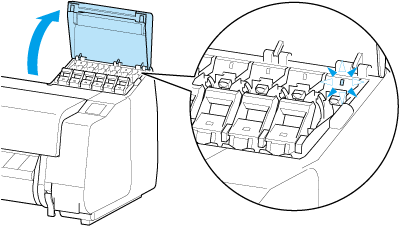 Puxe a alavanca de bloqueio do cartucho de tinta para cima.