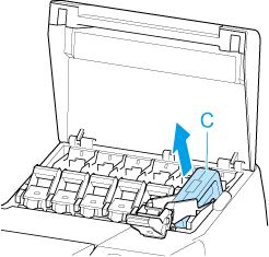 Use a alça (C) para remover o cartucho de tinta.
