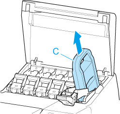 Segure o cartucho de tinta pelas alças (C) e remova-o.
