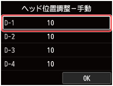 プリントヘッド位置の調整値を入力する画面が表示されます。