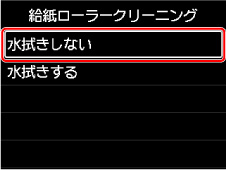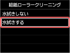 [給紙ローラークリーニング]画面で[水拭きする]を選ぶ