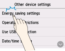 Toccare Impostazioni risparmio energia (Energy saving settings).