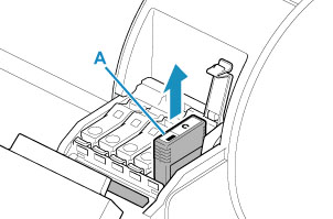 Извлеките чернильный контейнер за рукоятки (A) и коснитесь OK.