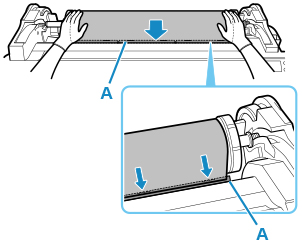 将卷纸边缘插入供纸槽(A)并送入卷纸,直到听到进纸声。