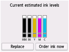 참고- 잉크 주문(Order ink now)을 탭하여 잉크 공급업체 정보를 확인할 수 있습니다.