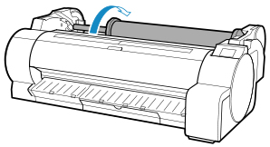 Обеими руками поверните держатель рулона назад для перемотки рулона.