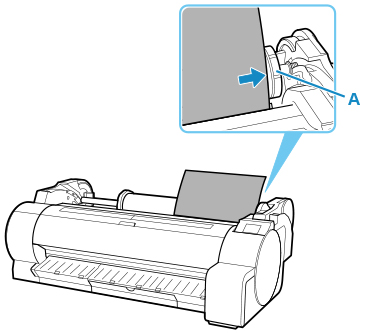 Поместите листы стороной для печати вверх возле фланца (A) держателя рулона.