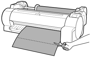 Отрежьте каждую страницу от рулона с помощью ножниц. Для непрерывной печати (если вы планируете разрезать каждую страницу позднее) выберите Автом. Обрезка (Automatic Cutting)>Да (Yes) или выберите Направляющая обрезки (Print Cut Guideline).