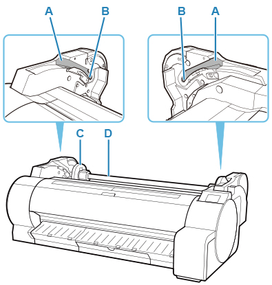 - (B) Отверстие держателя рулона