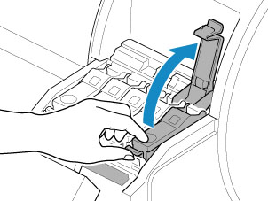 重要事项- 取出墨水盒后,除非准备运输打印机,否则请勿关闭打印机。 否则可能会弄脏墨水盒舱盖内部。