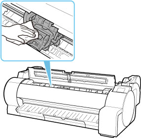 如果打印头锁定盖和打印头锁定杆脏污,请使用浸过水并拧干的抹布将其擦拭干净。
