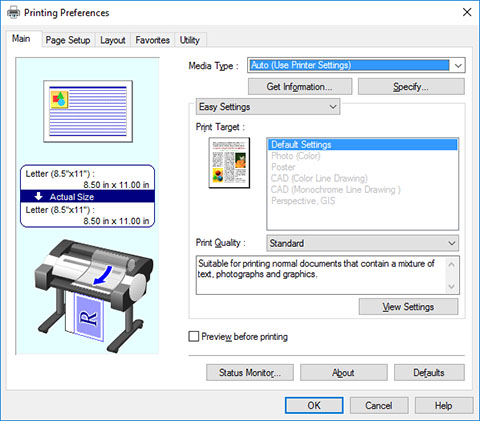 프린터 드라이버에서 용지 종류 및 기타 상세 설정을 완료합니다.