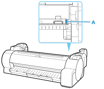 롤 용지가 많이 남아 있으면 시트지를 롤 홀더의 오른쪽에 있는 플랜지(A)에 맞게 놓지 못할 수 있습니다.