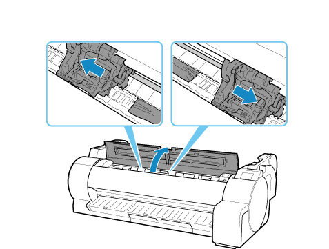 상단 커버를 열고 캐리지를 걸린 용지와 멀리 떨어지도록 왼쪽 또는 오른쪽으로 수동 이동합니다.