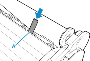 A4 용지를 세로로 네 번 접어 급지구의 틈새로 삽입합니다. 용지 조각을 플래튼 쪽으로 밀어냅니다.