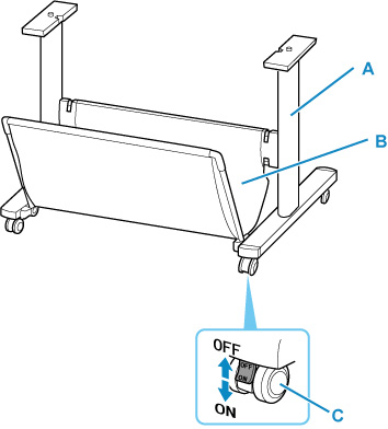 - Les roulettes peuvent être entièrement verrouillées. Lorsque vous déplacez l'imprimante, assurez-vous de déverrouiller les 4 roulettes. Si vous la déplacez alors qu'une roulette de verrouillage est verrouillée, vous risquez de rayer le plancher.