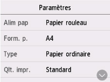 Vous pouvez changer les paramètres, tels que le format de page, le type de support, la qualité d'impression, etc.