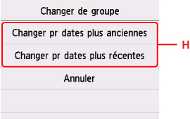 H: Sélectionnez pour changer le groupe de la photo.