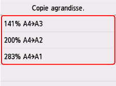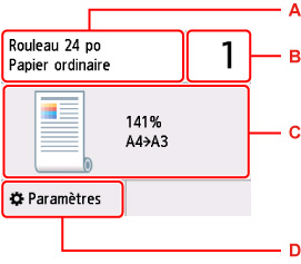 Si le papier rouleau et la feuille de découpe sont chargés, un écran s'affiche pour vous demander le support à utiliser. Sélectionnez Copie sur papier rouleau.