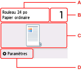 Si le papier rouleau et la feuille de découpe sont chargés, un écran s'affiche pour vous demander le support à utiliser. Sélectionnez Copie sur papier rouleau.