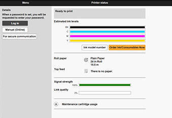 Al termine dell'autenticazione della password, i menu che possono essere utilizzati sono visualizzati nel browser Web.