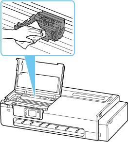 6. If the print head locking cover and print head lock lever are dirty, use a damp cloth that you have wrung out completely to wipe them clean.