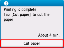 Mientras sujeta el documento impreso desde la parte inferior para evitar que se caiga, seleccione Cortar papel (Cut paper) para cortar el rollo de papel.