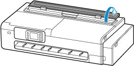 Abra la cubierta de alimentación del rollo de papel desbloqueándola con la palanca en la posición indicada en la figura.