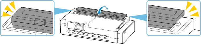 Cierre la cubierta de alimentación del rollo de papel y la cubierta de alimentación de hoja cortada.