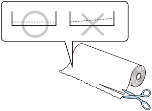 Si el extremo inicial del rollo de papel se ha inclinado o doblado, puede que el papel no se alimente correctamente. Corte el extremo inicial con unas tijeras para enderezarlo.