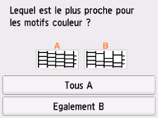 Sur l'écran de confirmation, sélectionnez le motif le plus proche du motif de vérification des buses imprimé.