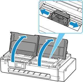 왼쪽 및 오른쪽 액세스 커버를 열고 액세스 커버와 캐리지를 걸린 용지에서 멀어지도록 수동으로 왼쪽 또는 오른쪽으로 이동합니다.