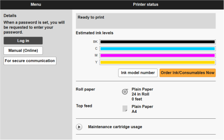 Você pode verificar o status da impressora e alterar as configurações da impressora usando o navegador da Web em seu smartphone, tablet ou computador.