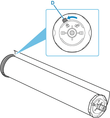 Turn the lock lever (D) of the inserted roll holder toward