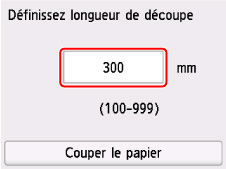 Sélectionnez le champ de saisie et entrez la longueur à laquelle vous souhaitez charger le papier rouleau.