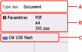 S'affiche lorsque vous sélectionnez PDF ou PDF compact pour Format, sur l'écran des paramètres de numérisation.