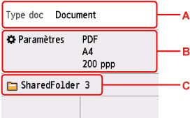 S'affiche lorsque vous sélectionnez PDF ou PDF compact pour Format, sur l'écran des paramètres de numérisation.