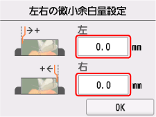 左右の調整値を設定して、[OK]を選ぶ