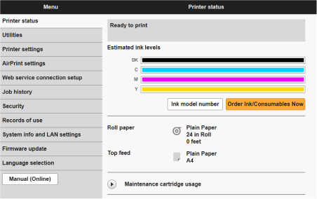 You can also connect to the ink purchase site or support page, and use Web Services.