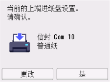 如果触摸屏上显示的页尺寸和类型与上端进纸盘中所装入纸张的尺寸和类型相匹配,请选择是。