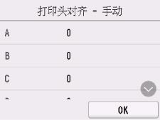 执行打印头对齐 - 手动时,将打印调整图案。 检查打印结果并输入设置值。