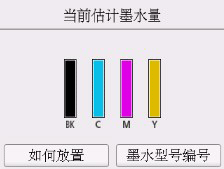 当墨水量低时,触摸屏上的墨水量上方会显示