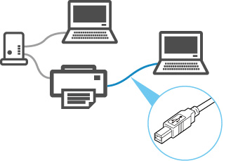 USB接続では、プリンターとパソコンが1対1で接続されます。