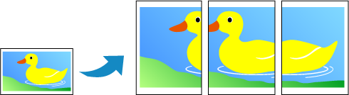 1ページのデータを拡大して、複数枚の用紙に分割して印刷します。出力用紙を貼り合わせることにより、A0サイズやANSI-Eサイズの大きな印刷物を作成できます。