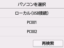 USB接続の場合は[ローカル(USB接続)]、LAN接続の場合は保存先のパソコンを選んでください。