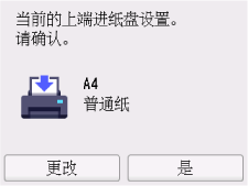 如果触摸屏上的纸张尺寸和类型与上端进纸盘中所装入纸张的尺寸和类型相匹配,请选择是。